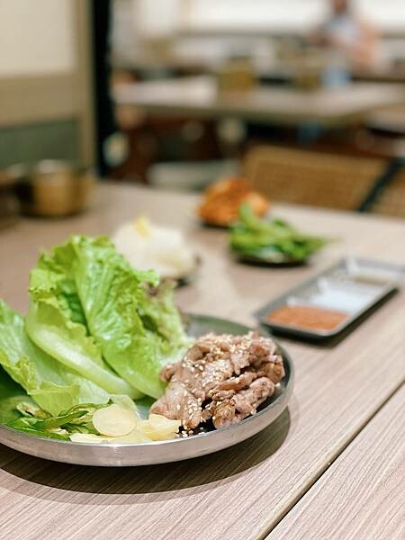 除了生菜包肉也有牛小排的選擇,梅花豬沒有太多的調味,可以沾取韓式大醬,鹽或是秘製烤肉醬.