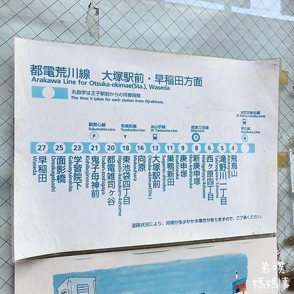 搭乘都電荒川線很簡單,有三之輪橋(三ノ輪橋駅)方向和早稻田兩個方向。弟噗媽這次從西日暮里搭到王子車站,是需要在返回抵達"荒川遊園地前",所以不是往早稻田方向。