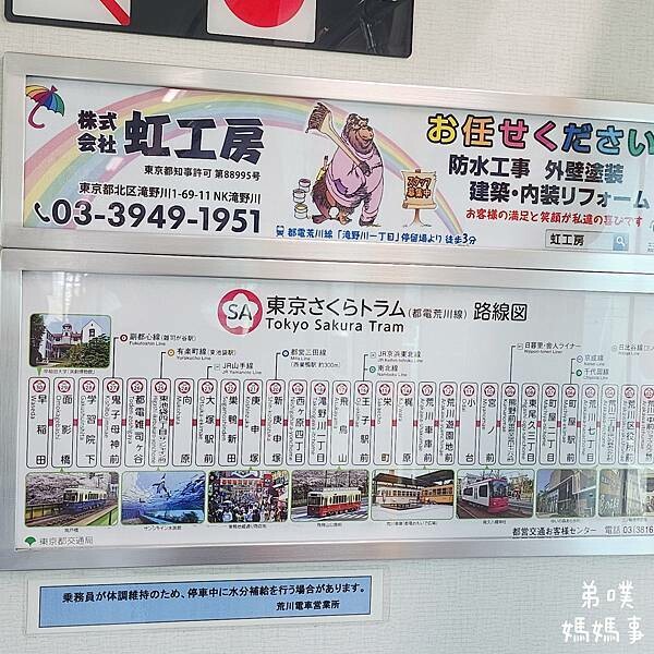 弟噗媽這趟從西日暮里出發到荒川遊樂園,交通上可以選擇搭JR線或地下鐵,再轉"都電荒川線"抵達"荒川遊園地前"車站。"都電荒川線"是東京少數的路面電車之一(另一條是東急世田谷線),也是「東京唯一公營的路面電車」,如果是鐵路迷來東京,推薦可以來搭看看喔!