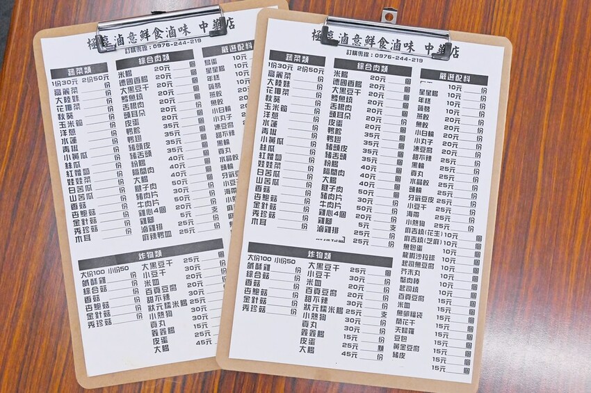 想知道價位的話,也有實體價目表可以參考,買滷味總是會對預算斤斤計較,所以也能拿著邊看邊夾就比較不會失控。上面其實10-15元的品項還挺多的,有些50元的我覺得單品項份量也不錯,蔬菜一次夾兩份更划算。其他也有一些火鍋料隨意三個10元。
