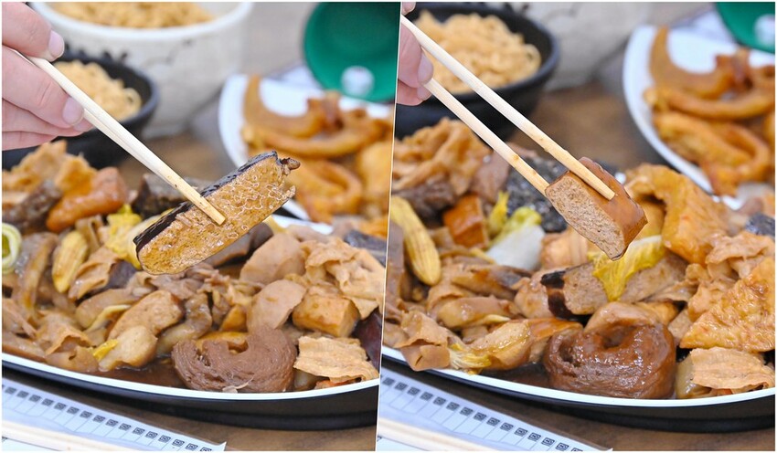 另外大小豆干都有點,我比較喜歡大豆干的口感,孔隙挺多較入味,也是厚切口感較好。小豆干緊實許多,可以挑自己喜歡的。