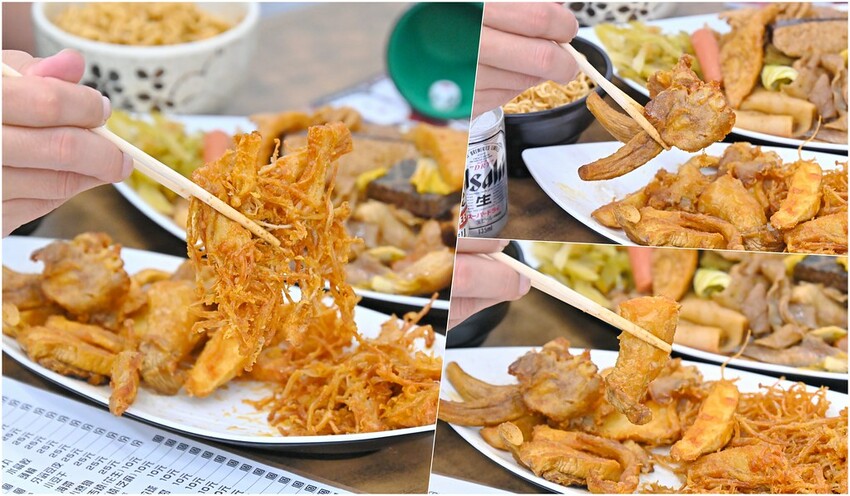 有杏鮑菇、袖珍菇跟金針菇三種,這天剛好沒有鹹酥雞可點,想不到整個份量還是不少的,而且我是比較少會點炸金針菇的,每一種都炸得不錯,麵衣不厚,香酥外皮之下還保有水份,不過感覺金針菇好像比較有油膩感一點。