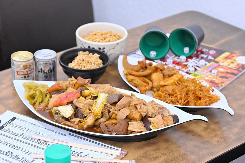 每桌都還有附上小骰盅跟骰子可以玩。