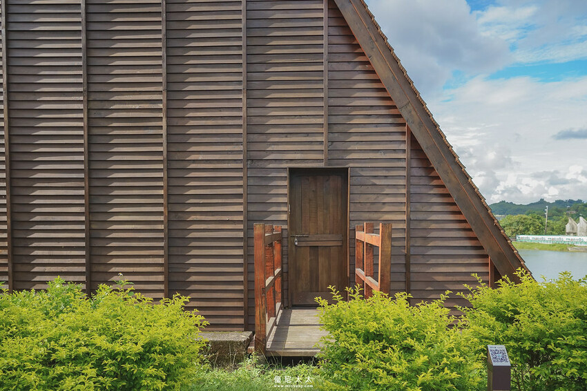 這個製材場的落成,是在至今60年前,在當時可是世界第二、東南亞第一的美式大型製材廠,隨著製材廠的結束營業,這些大型建築都被保留下來,說真的當初在地圖上看到沒有很勾起我的興趣,但是實際造訪後,還是被這些充滿歲月痕跡且木造的造景給震懾,再搭配背景的湖景及山雲,瞬間讓我以為自己來到了台東,這個景色實在太美,尤其是三角形外觀的燃料倉,很適合拍攝大片呀!