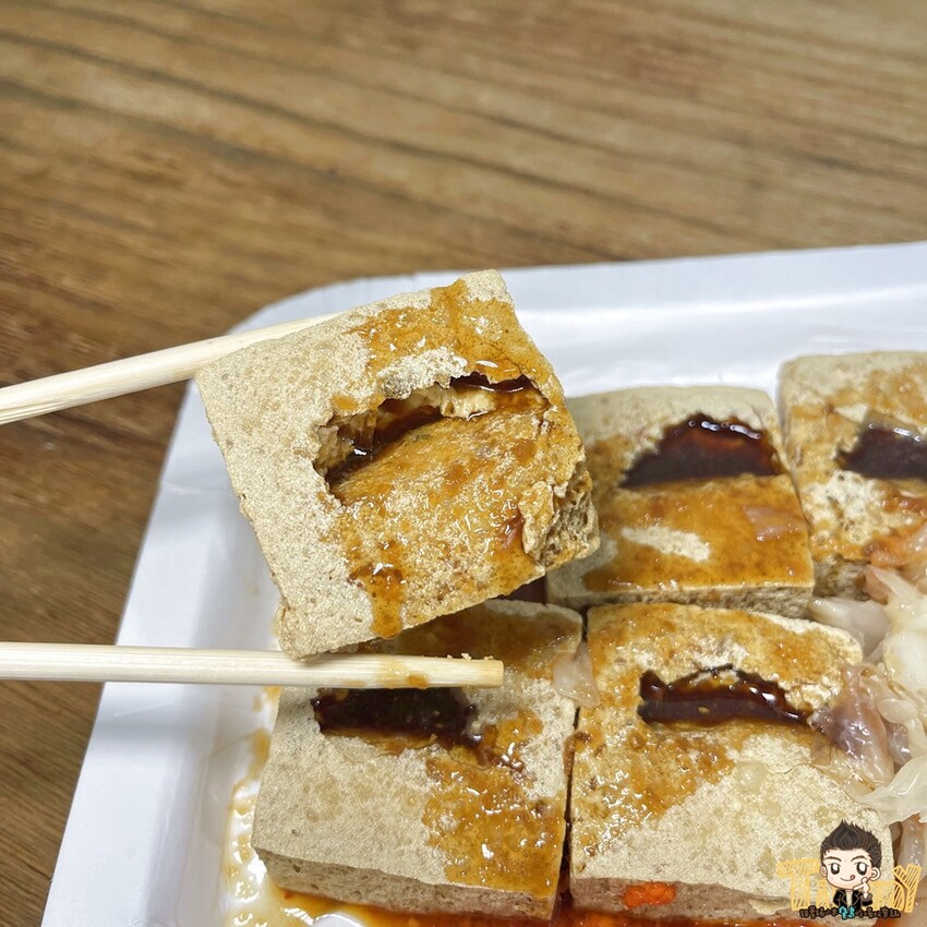 臭豆腐還挺有厚度的,氣孔吸附滿滿的醬汁~