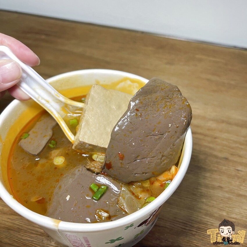 大塊的鴨血和豆腐吸飽麻辣帶甘甜的湯汁,一口咬下有爆汁的口感