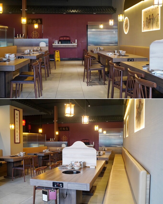 「麻辣囍室」店內座位以4~6人桌為主,每桌都有文青的平風間隔,用餐起來格外舒適,全部共有70個座位左右,也很適合包場!牆面裝飾還以有趣的slogan來增添用餐氛圍~