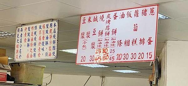 餐點以油條、燒餅、飯糰、蛋餅、豆漿等餐點