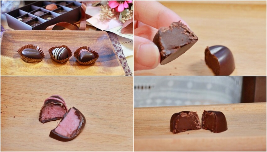 焦糖甜心:愛心款的巧克力真的好甜蜜,帶點酸甜又純黑巧克力的濃郁感,喜愛的不的了噎!