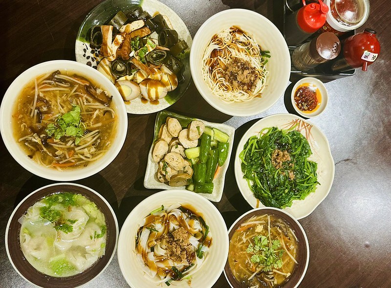 點了乾麵、肉羹湯、粄條、餛飩湯、小菜、燙青菜....等;