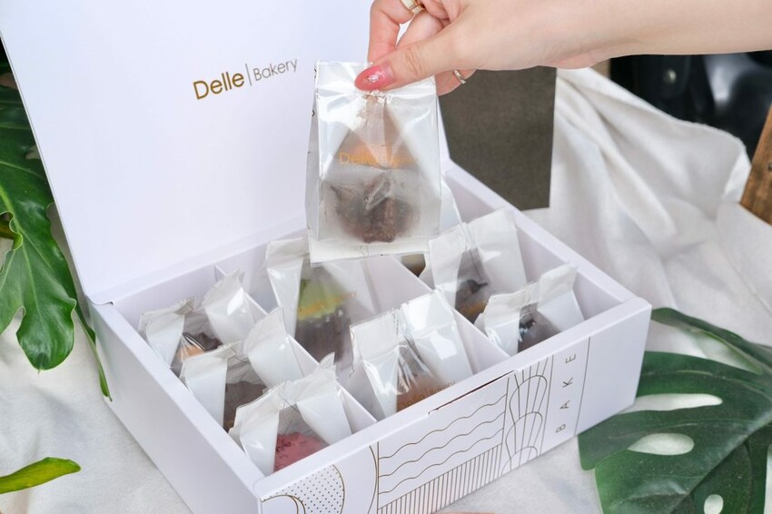 ▼【Delle Bakery可麗露專賣店】的禮盒以質感白色系為主軸,承載著獨立包裝的可麗露,拿來送禮或是自己吃都很適合,收到未立即享用可冷凍保存。密封冷凍最長14天,回溫5~10分鐘即可享用。