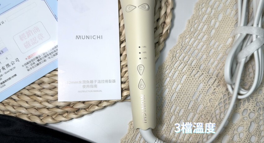 這款【MUNICHI 沐尼黑】水潤負離子溫控捲髮器MR.Curler 內附收納袋、說明書、保固卡