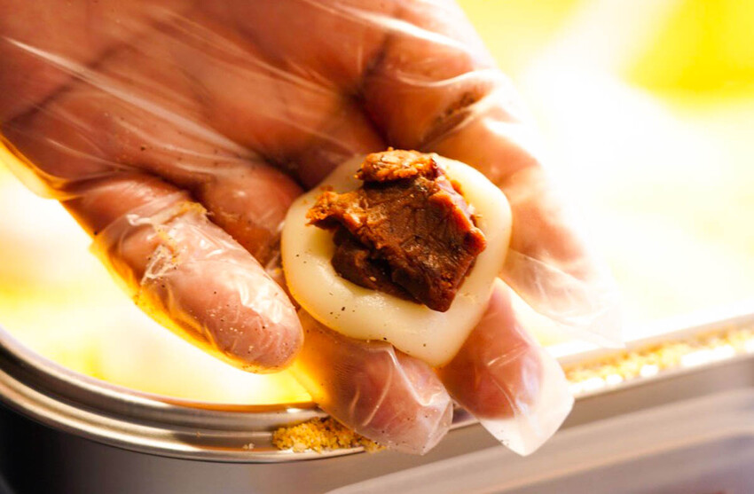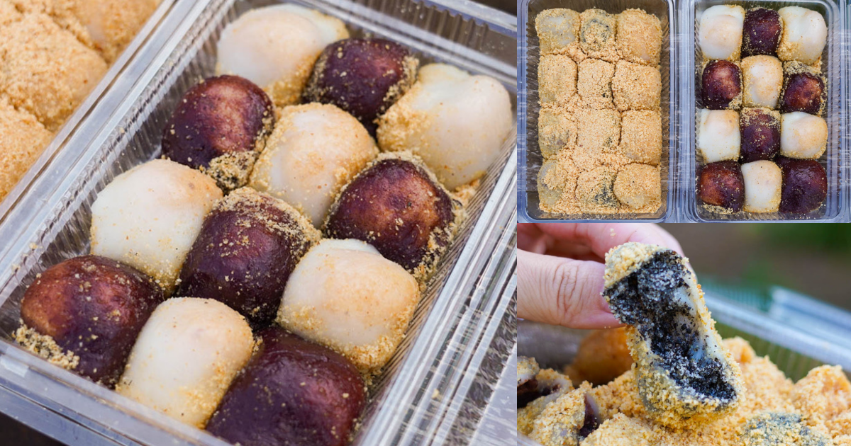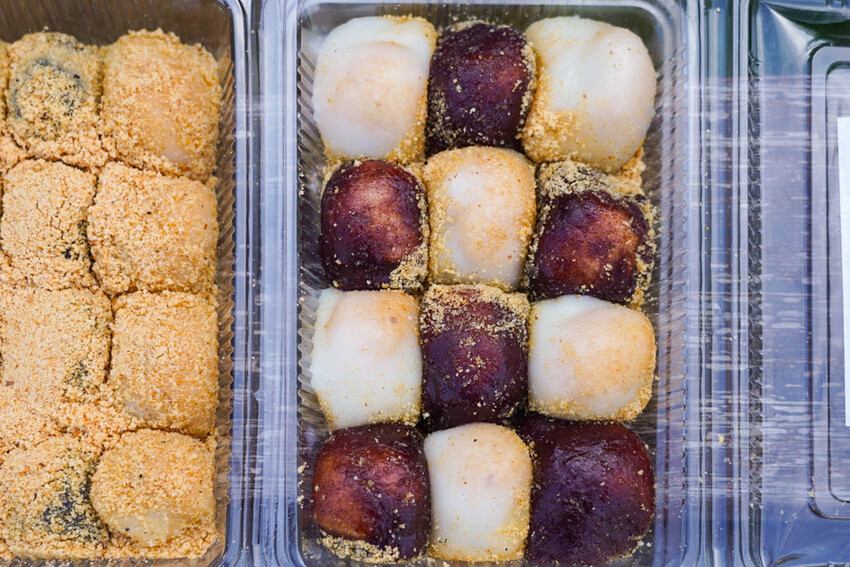 麻糬剪開來內餡都快跑出來!一整排紅豆沙、一整排芝麻餡、一整排花生粉,不用怕拿錯口味~