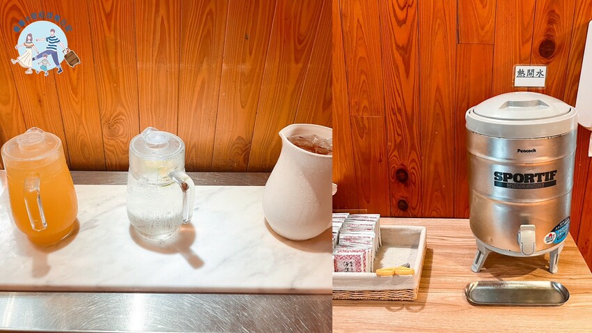 飲品:柳橙汁、檸檬水、酸梅汁,還有熱開水可以泡茶~