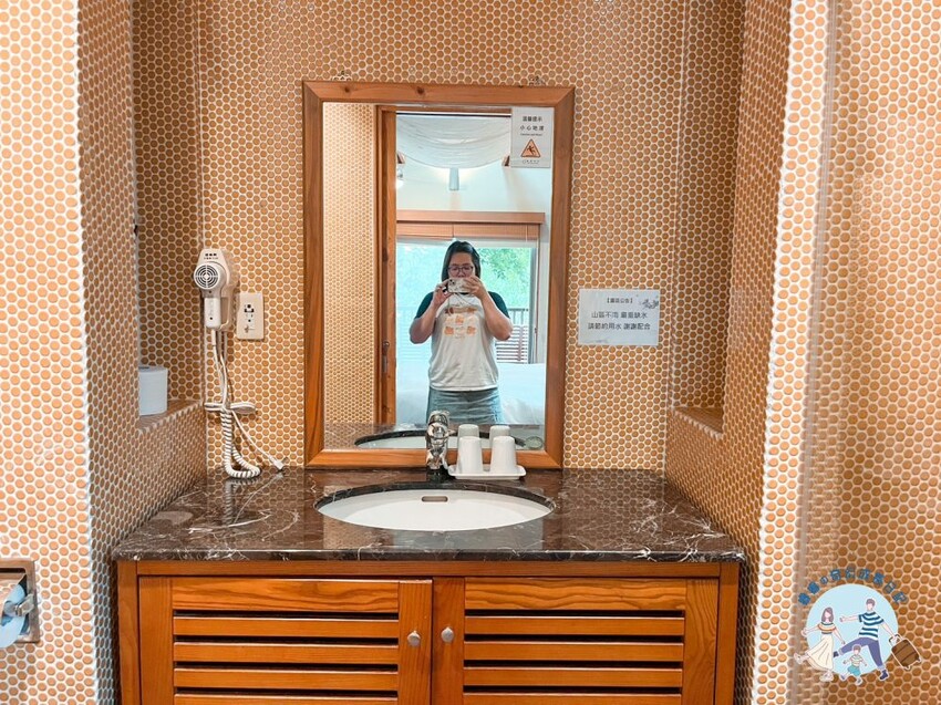 另一間設置在客廳的角落,睿媽私心更愛這間浴室,因為浴室裡竟然有檜木泡澡桶,睿睿晚上在這泡澡玩水玩超久的呢!擁有兩間浴室的好處就是洗澡、廁所都不用等旅伴,非常方便呢!Δ房內盥洗熱水供應時間:16:00~00:00、06:00~09:00