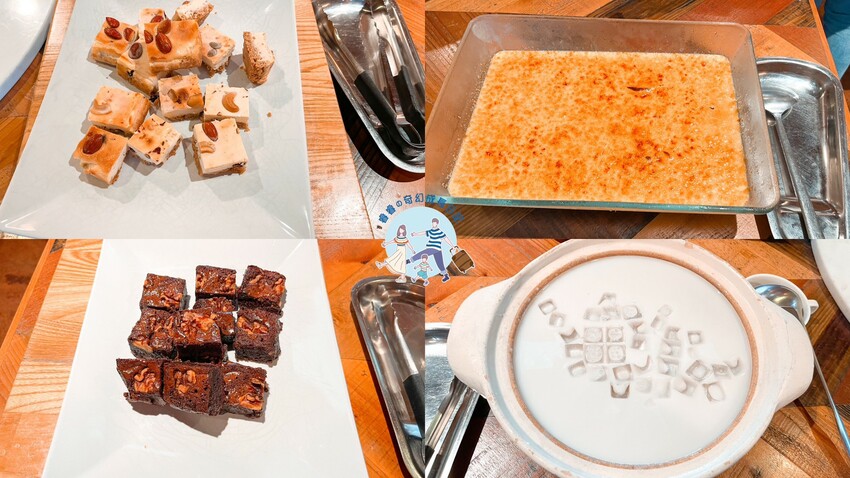 甜點:巴斯克乳酪蛋糕、布朗尼蛋糕、焦糖布蕾、芋頭西米露,不得不說巴斯克乳酪蛋糕、布朗尼蛋糕真的超好吃~好吃到我跟睿爸掃盤(笑)