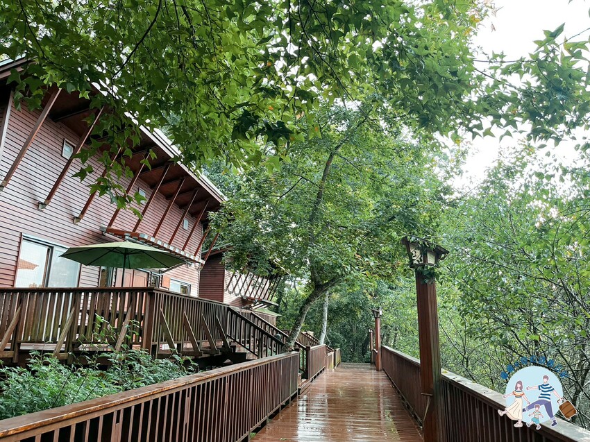 綠建築木屋外觀超日式,最外面還有一個門檔以及涼亭、躺椅,每一間獨立木屋都是使用一種茶為命名,像我們這次入住的是木屋叫『碧螺春』,另外還有金萱閣、鐵觀音、四季春、翠玉閣,使用茶命名還是睿媽第一次看到,我們一致覺得超可愛的♥