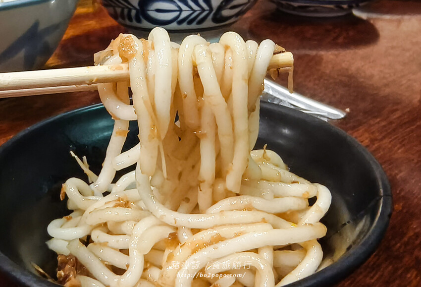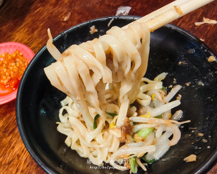 帶有點透明色的不規則邊緣麵條,有著獨特的Q彈感,吃起來也不會太乾。