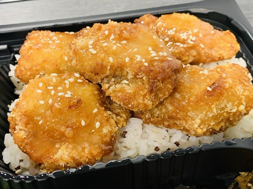 超多、超大塊的酥炸魚塊,淋上橙汁增添風味,再灑上白芝麻增加香氣,營養、非常的下飯。