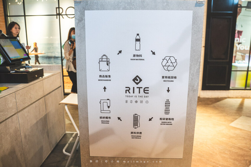 從回收的寶特瓶開始變成紡紗織布再來製作包包跟周邊商品,真的是超環保。