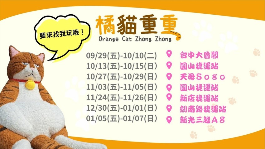 貓奴必追!!超萌3米高厭世橘貓9/29來台中快閃囉!看橘貓起床秀、逛市集百貨吃美食