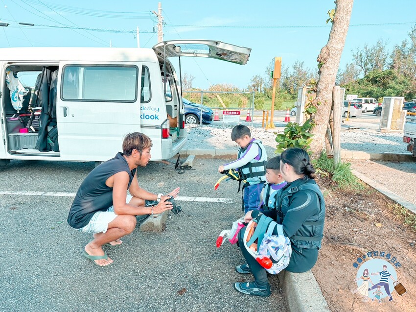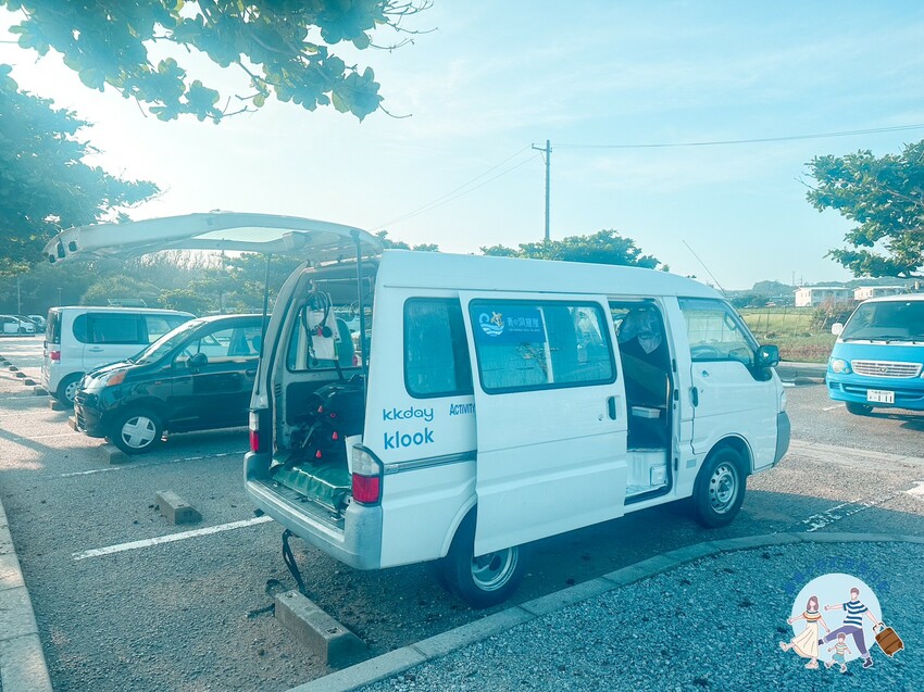 我們這次的藍洞浮潛行程於真榮田岬停車場集合,找尋沖繩 青之洞窟屋的行動車,