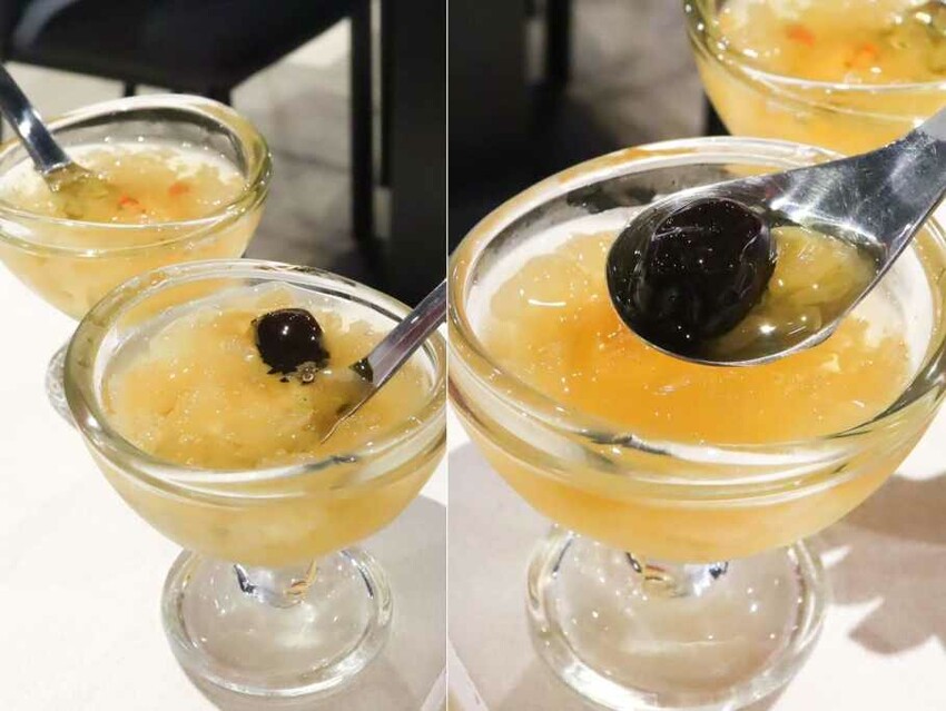 ▼甜點是谷溜谷溜井裡月頂級銀耳飲。銀耳絲滑黏稠的口感真的很古溜,整體甜度剛剛好,還有紅棗、枸杞增添香氣,冰涼清爽