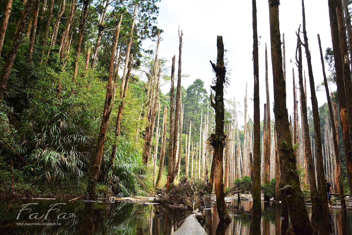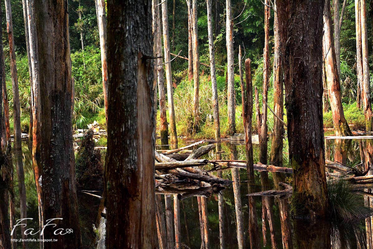 踏過泥濘小徑,一眼望去都是佇立的乾枯杉木,壯觀的令人驚呼。 |