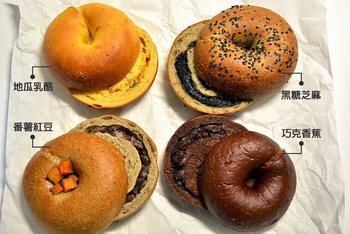 | 由上而下分別是 香蕉巧克力 地瓜乳酪 黑糖黑芝麻 黑糖紅豆蜜番薯 |
