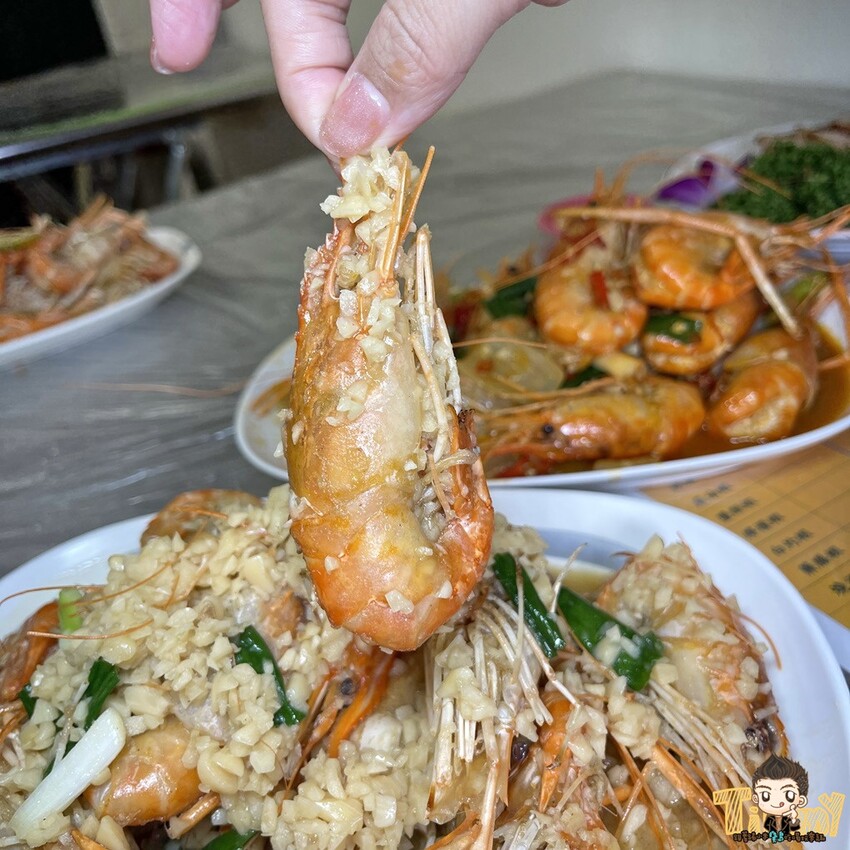 蒜頭蝦(母蝦700元/斤),滿滿的蒜末真的超浮誇的,一上桌濃郁的香氣就讓我們流口水了