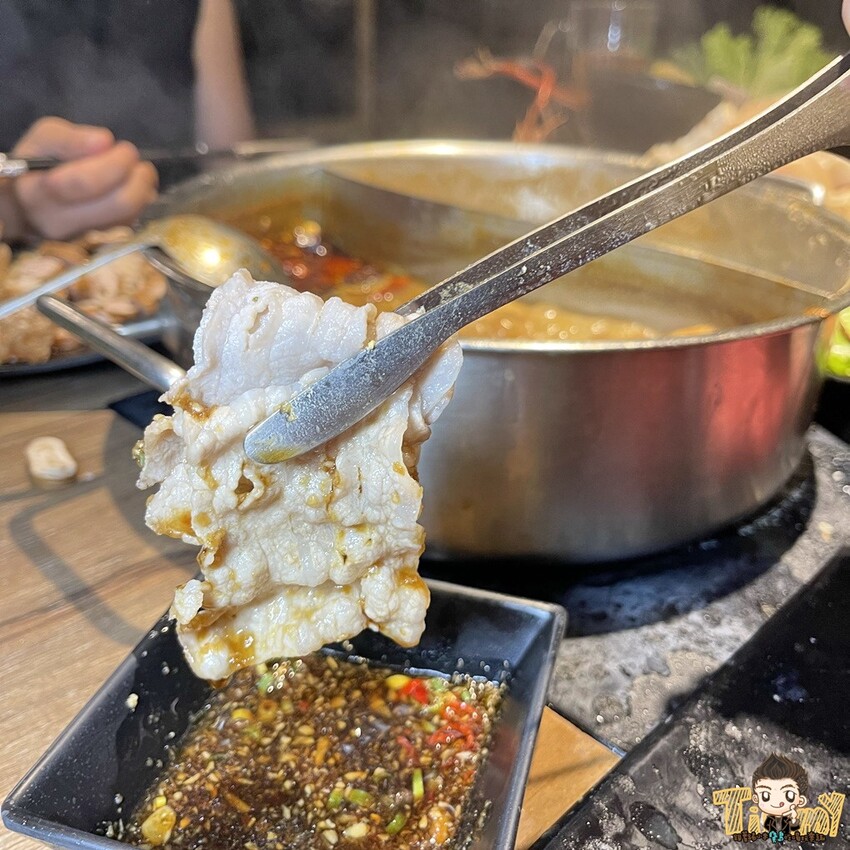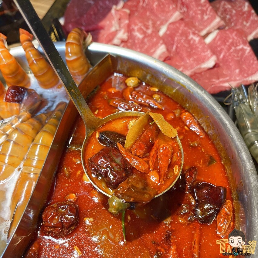 四川紅辣子湯可以選擇辣度,帶麻辣甘甜風味,涮食材不需要額外沾醬汁,直接吃就很夠味了
