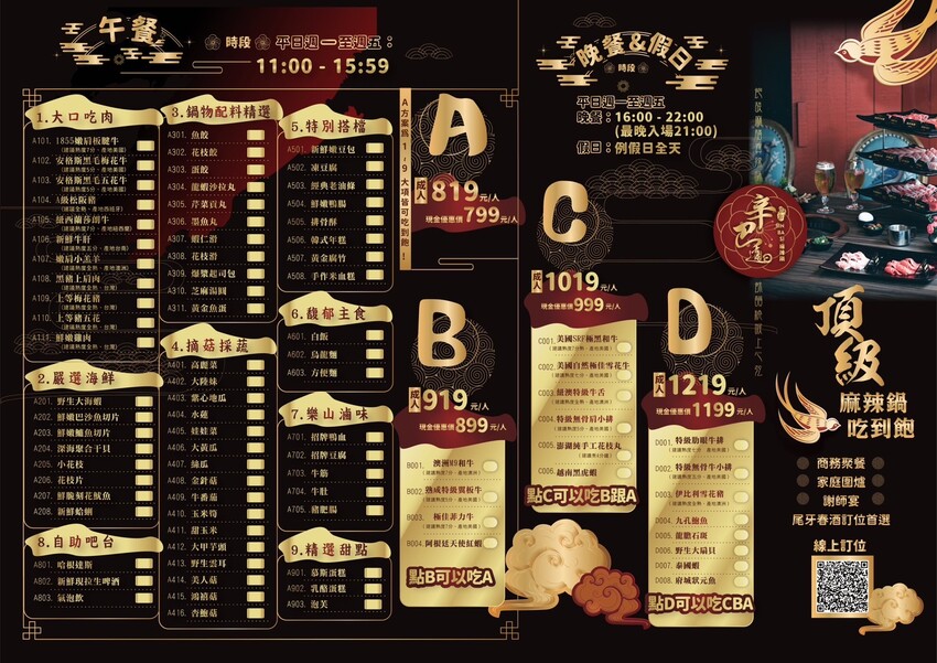 吃到飽有A、B、C、D共4個方案可以選擇。