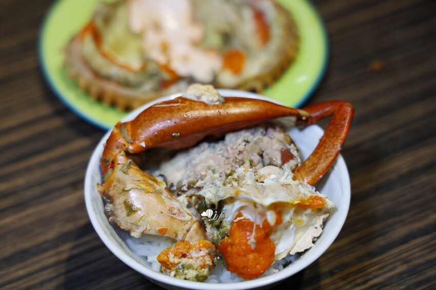 好友見到那肉餅下的鮮美湯汁,忍不住叫了一碗白飯,依序放上肉餅及螃蟹,最後再淋上湯汁,這實在太奢侈了!
