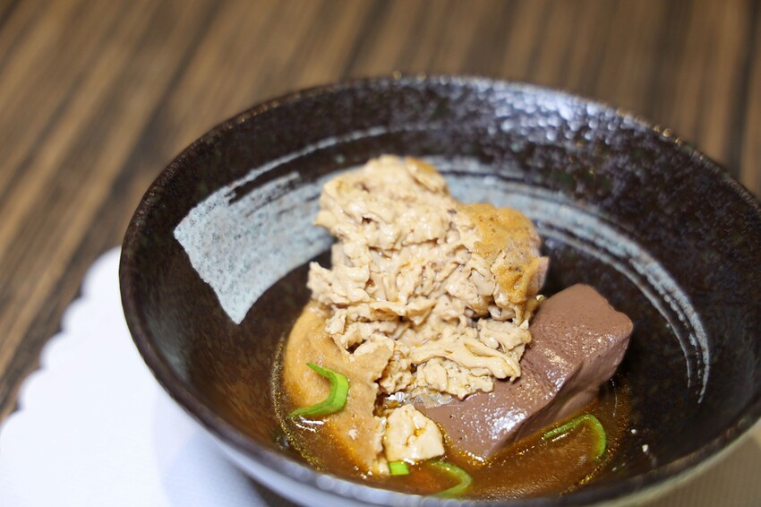 這個豆包實在很有內涵,而且非常軟滑有層次,吸滿了香麻辣的滋味,真的有夠好吃的!其中還有如果凍一般的鴨血,更是令人超滿意!這整個湯汁也好想拿來拌麵吃喔!