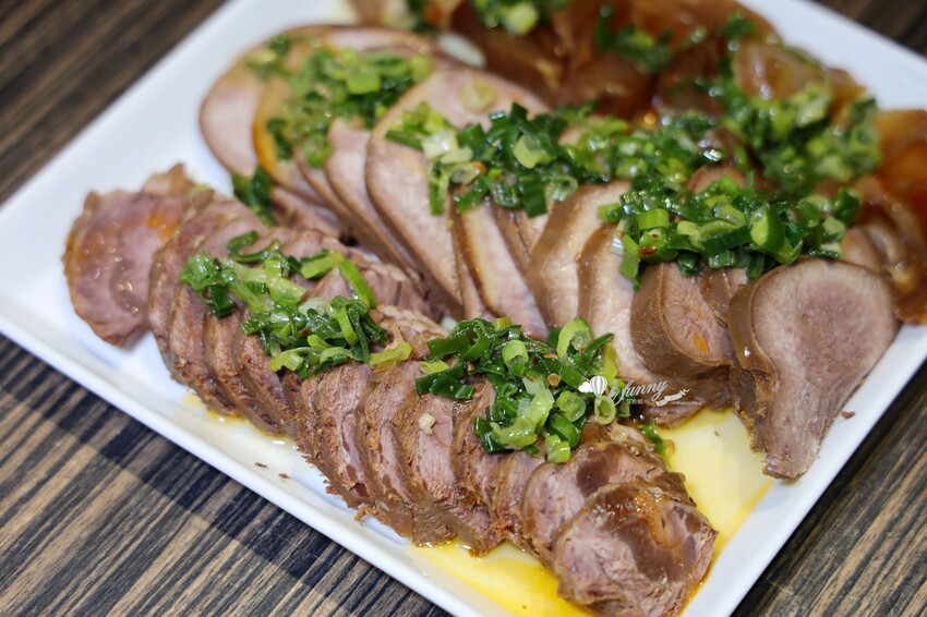 自製的鹽蔥,淋在牛腱上,牛腱非常地軟嫰易嚼,一點都沒有擱牙的感覺。另外那個厚切的牛舌,看了是不是很過癮!口感真的超好的,一點腥味都沒有,搭著鹽蔥就是超對味。