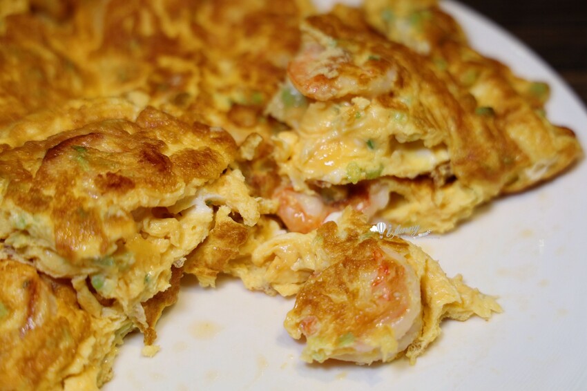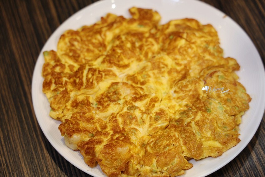 烘蛋的熟度滑嫰不已,滿滿蔥香、蛋香還有蝦仁的鮮味。