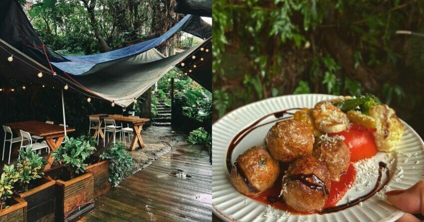 Gamins稚時是一間隱身九份山林裡的森林系餐廳,採預約制、一周只營業四天,離九份老街約八分鐘車程的地方,就可以抵達這間戶外秘境小餐館。這裡菜單菜色選擇雖不多,但樣樣精緻好吃,搭配山林絕景就好像是在森林裡用餐一樣!非常幽靜,感覺非常特別。舊房子的室外庭園搭起了棚子,沿著圓弧形拉起了燈泡,巨大的樹木和葉子圍繞著庭園,即使下起雨,也能讓人感受到詩意。