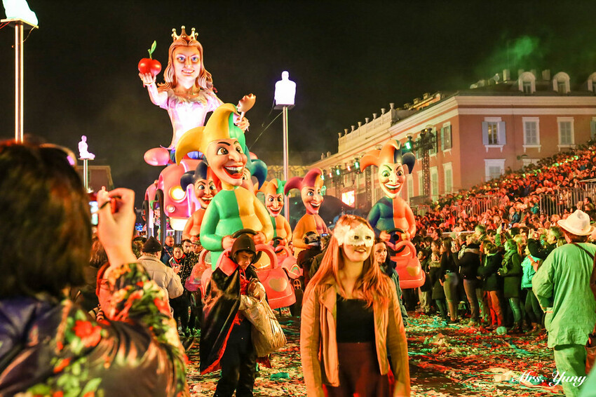 每年的二月及三月,南法尼斯就會盛大舉辦為期兩週的嘉年華慶典,每一年都會吸引上百萬的觀光客湧入尼斯,而『尼斯嘉年華』的起源,可追溯至中世紀1294年,這是一個為了迎接長達40天的齋戒月,而在齋戒月來臨之前,讓人們盡情享受美食及狂歡的慶典,在過去,這是一個專屬於宮廷貴族的活動,隨著時間演進,慢慢的成為民間普天同慶的嘉年華