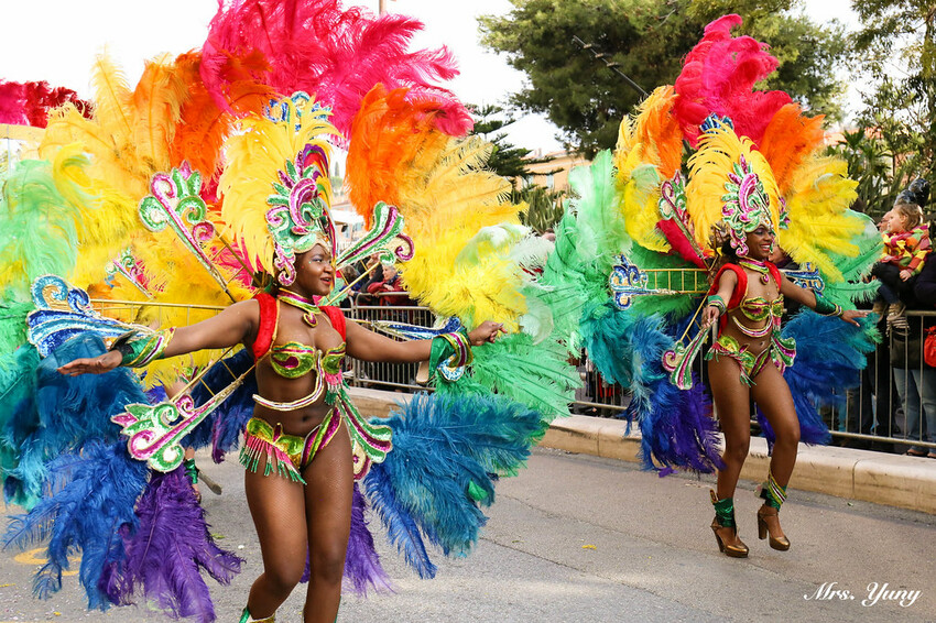 嘉年華上遊行的表演者都精心妝扮及用羽毛、亮片及人造寶石作為點綴的服裝,表演團隊也有來自巴西里約嘉年華的舞者,繽紛的羽毛搭配舞者火辣的身材,一群人一同跳舞,場面超壯觀