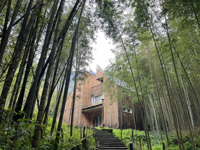 沿著神木步道往下,沿途景觀從神木山林,再到孟宗竹林,漫步於茂密的竹海之中,聆聽著竹葉在微風中的沙沙聲。一座隱密於竹林中的建築映入眼簾。竹廬外觀以其壯觀的竹林建造而成,融合了傳統中國式風貌於現代,圓形大門呼應竹子的圓柱外觀,內部透過落地窗及圓窗,處處呈現出一幅幅的天然美景。據說其建造的由來為前總統蔣介石的私人行館,因此內部很少對外開放,期待哪天有機會一窺究竟。