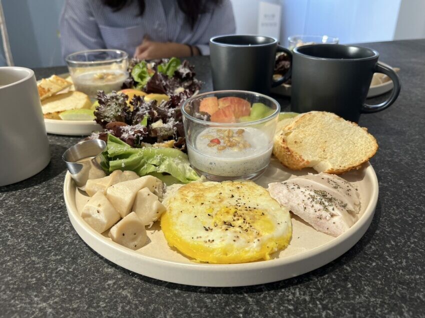 入住時老闆會詢問隔日早餐的用餐時間,有8點及9點兩個時段可以選,濃醇的咖啡香味撲鼻而來,胃口頓時大開。找一個自己喜歡的座位入座,一份精心準備的早餐set,開啟美好的一天。餐點有燕麥優格、新鮮的蔬菜、脆口的麵包和美味的配料,不僅健康又美味,還充滿均衡的營養。在旬日覓覓,提供的不僅是一個舒適的住宿環境,更是提供一個像家一樣溫馨的氛圍。