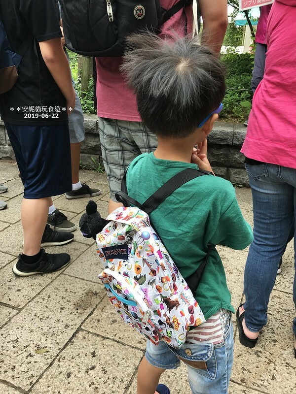 乖乖排隊等進去龍貓巴士的小孩