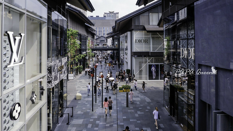 成都的時尚地標之一,鄰近春熙路,背靠大慈寺,集結購物、美食、休閒娛樂为一體的大型購物商街,這裡的結構設計與台中麗寶購物中心接近,但兩者差異除了太古里延續古建築重整,腹地更大,延伸到地下空間與成都地鐵相結合,是多樣貌的購物聖地