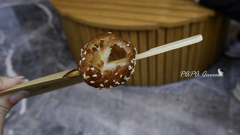 看起來超像糖葫蘆…點餐付款都是刷碼,蛋烘糕現點現做,糖油果子直接拿就可以