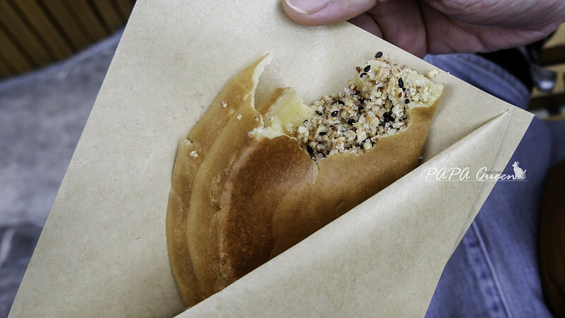 蛋烘糕則是薄薄麵衣(很蛋)可以做成鹹-有肉,或是甜點則是花生芝麻糖粉這樣!