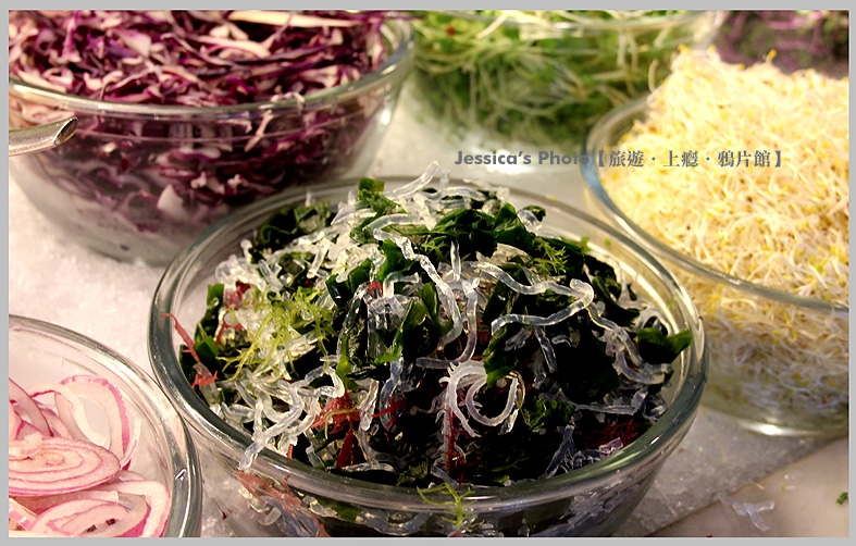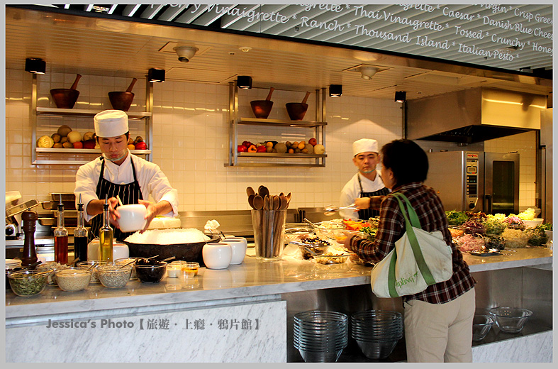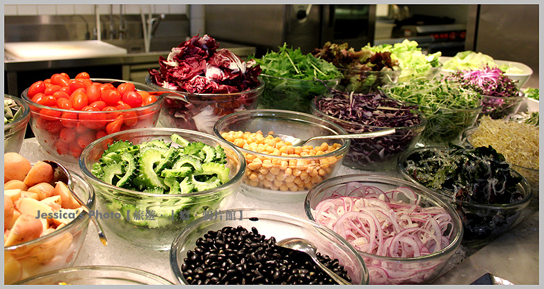 接下來介紹沙拉吧,挑選好材料與幾種醬汁後,左邊有專門的人幫你調拌,