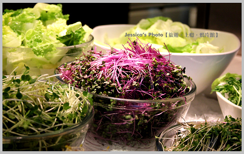沙拉的材料,有數十種選擇之多,就近於陽明山等處進貨,雖不能標榜有機,但食材盡量也挑好的,如吉園圃等級。