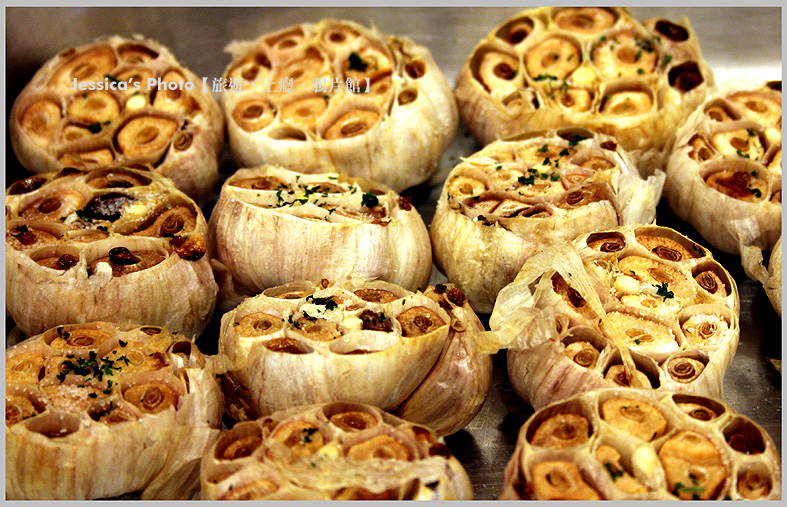 下面這烤得香氣四溢的蒜頭,很棒吧?是搭配牛肉吃的。