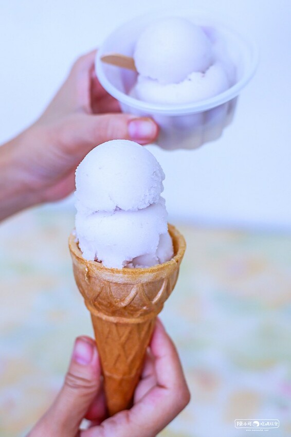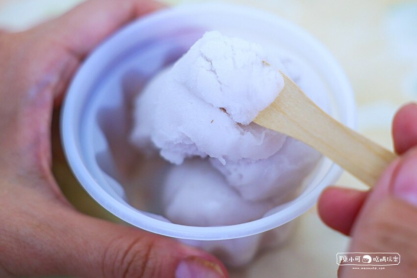 天然的芋冰選用大甲芋頭製作,芋冰呈現淡淡紫白色,沒有化學的濃厚風味。冰體綿密、淡雅的芋頭香不會過於甜膩,但總覺得離自己心目中好吃的芋頭冰還有一點點距離。