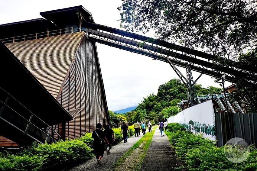 沿著園區漫步可以看到原大製材廠、貯木池、切片倉、燃料倉、鍋爐間、原木梯與汽修廠等,